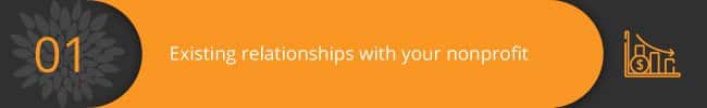 A prospect’s relationships with other nonprofit organizations is another key point of donor research that you might have used to identify them in the first place.